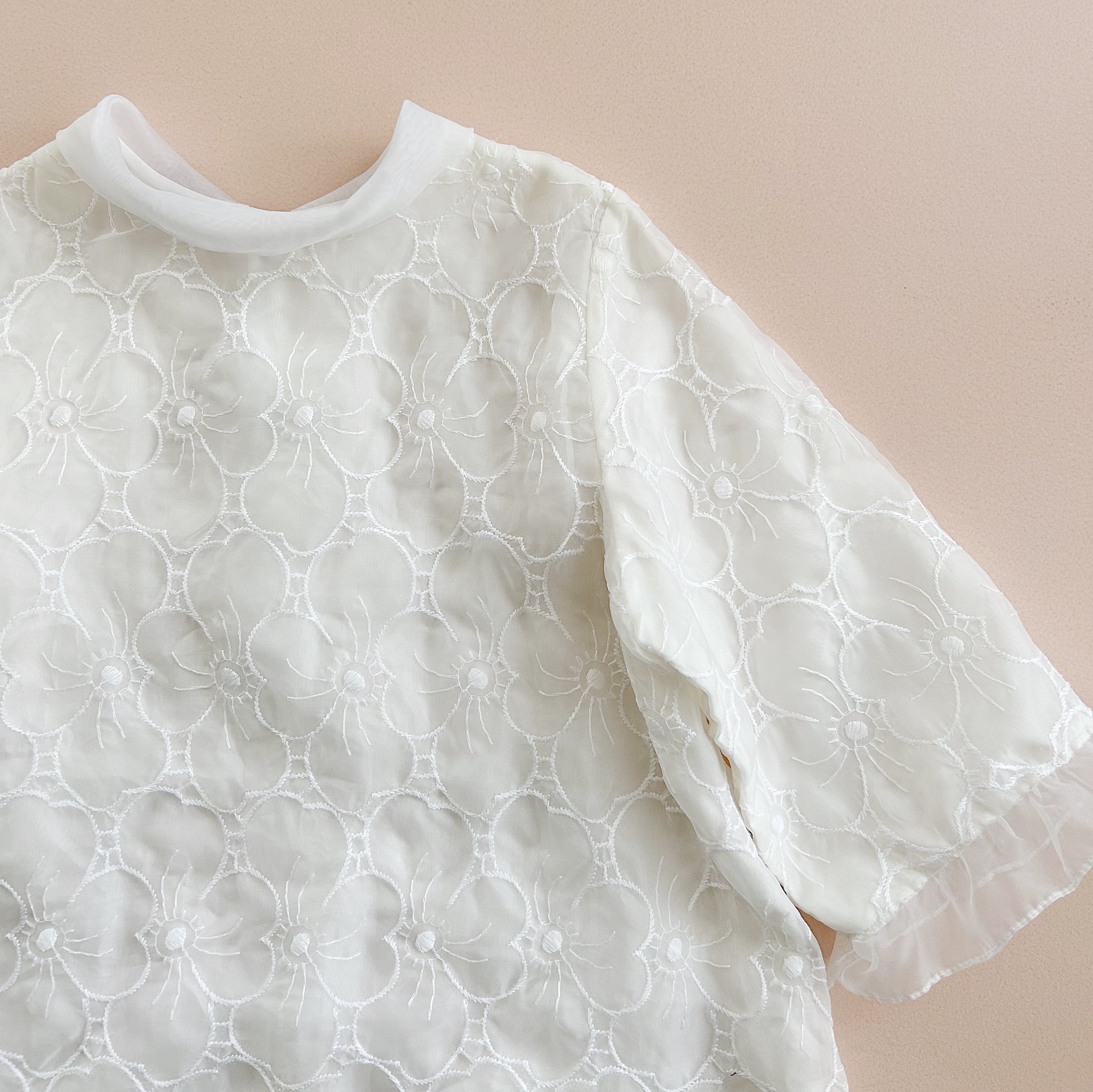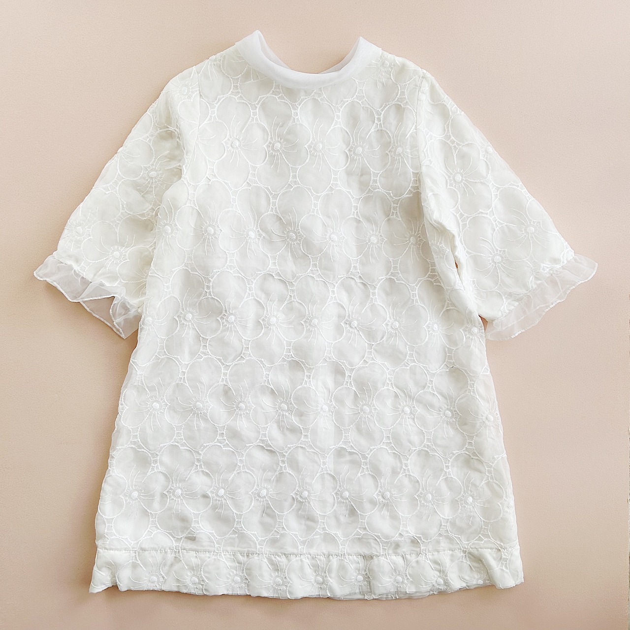 ふっくらとした花刺繍に穏やかな愛らしさを感じるキッズドレス。